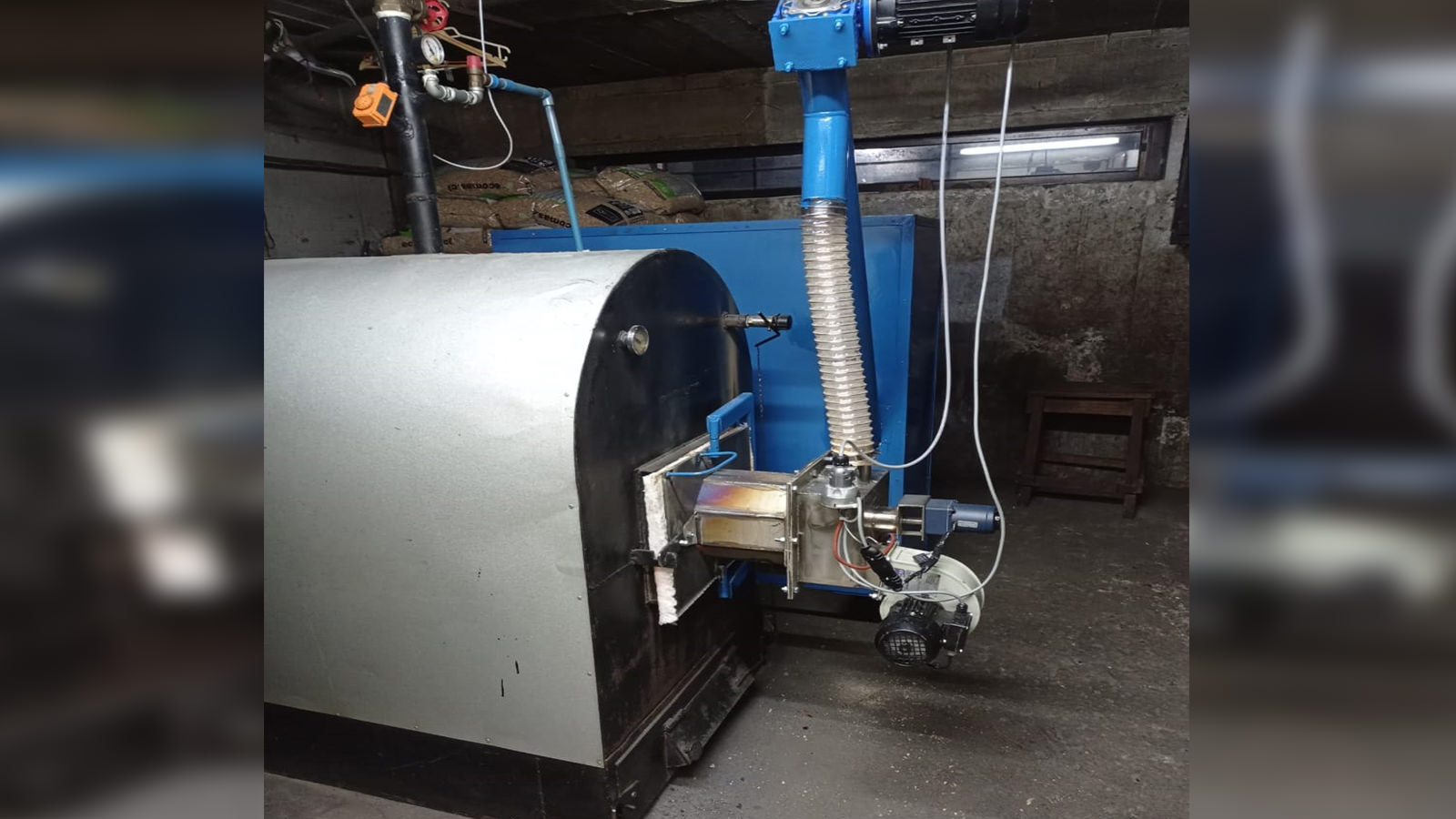 Se instala quemador a pellets de 150 Kw de potencia máx. Tolva de 300 kg.