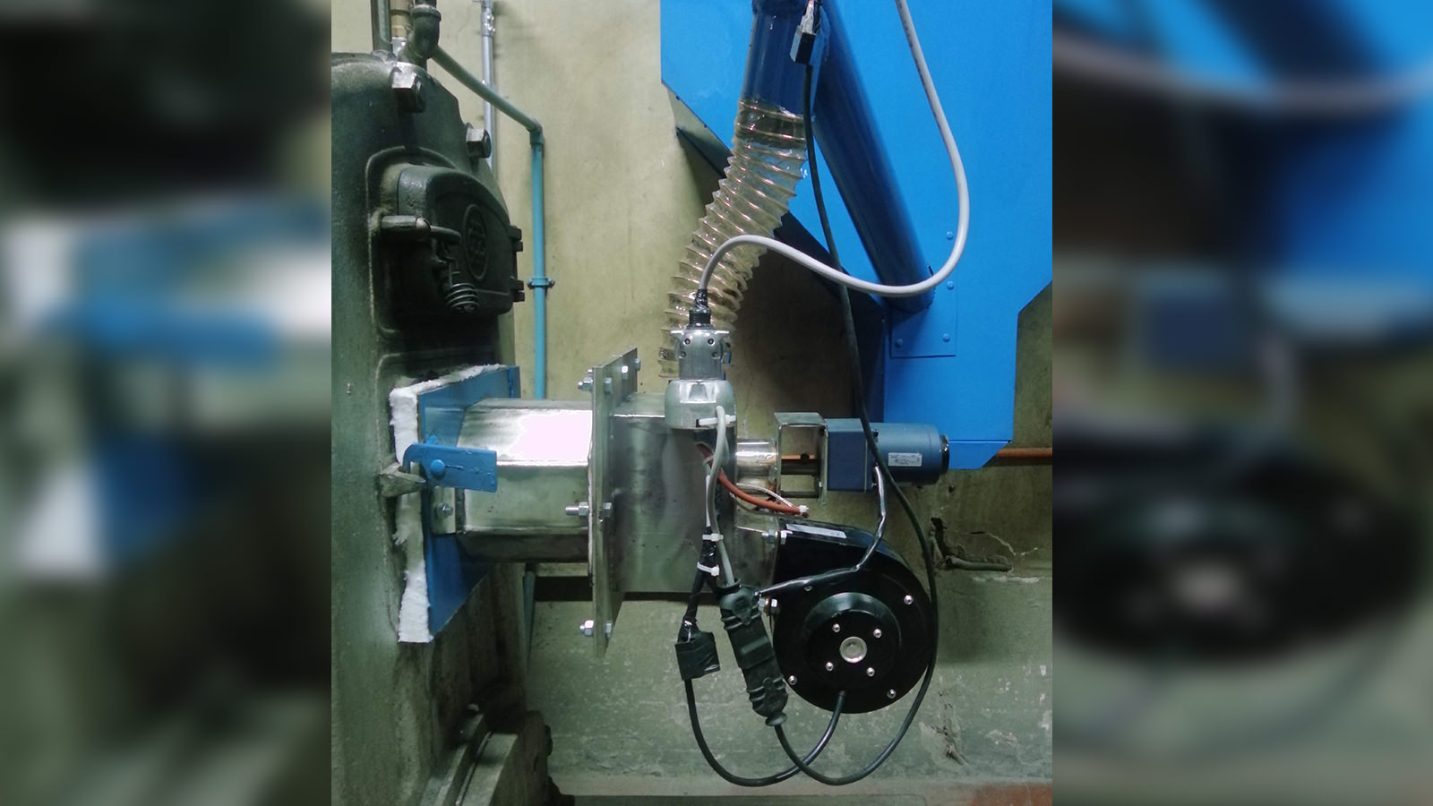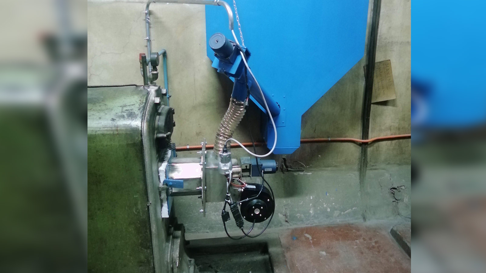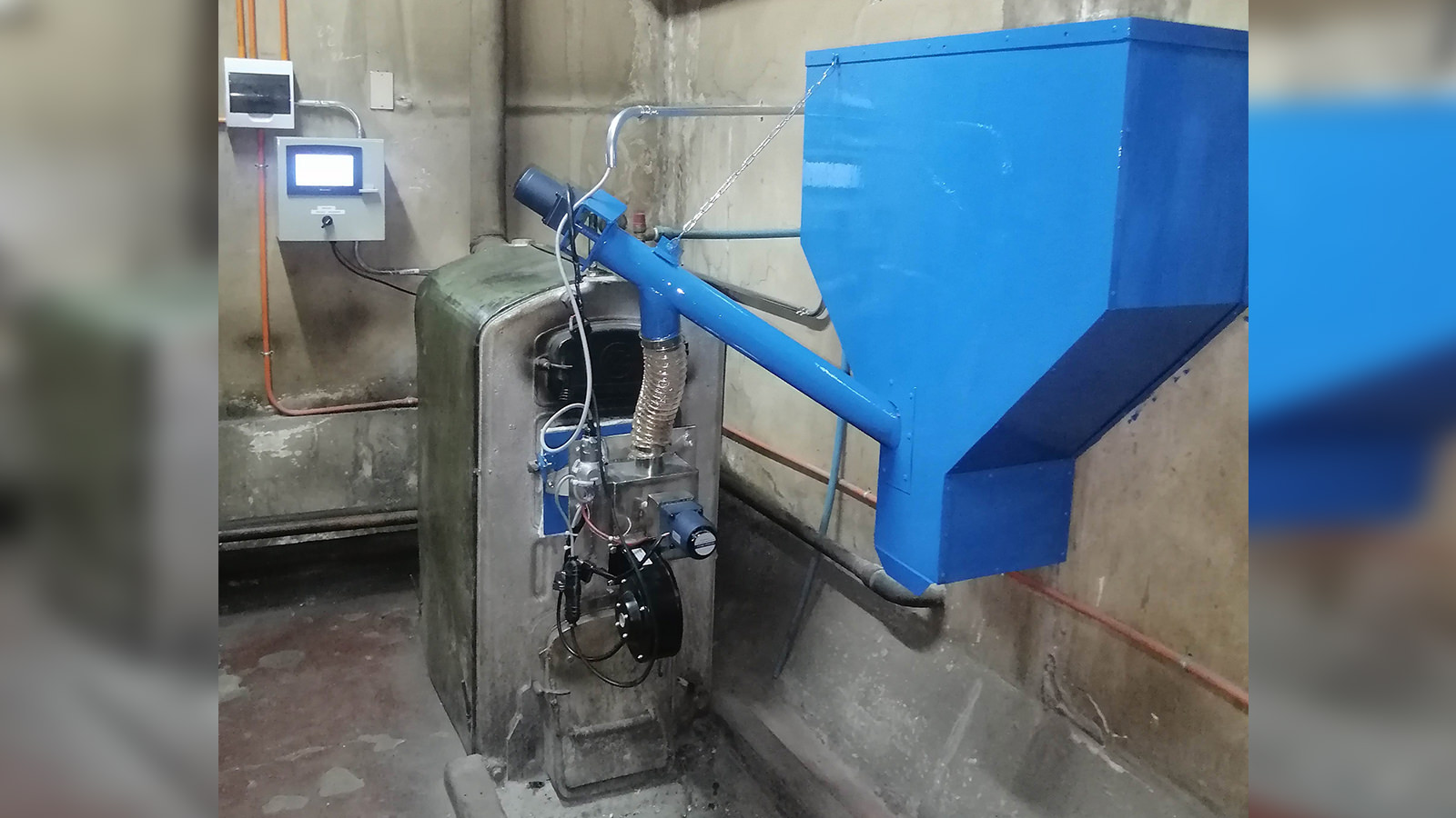 Se instala quemador a pellets de 70 Kw de potencia máx. Tolva de 100 kg.