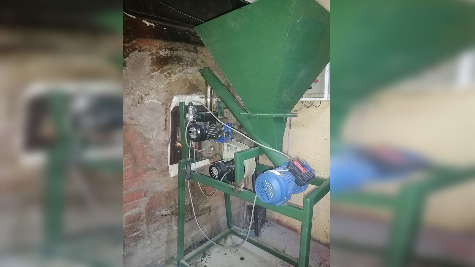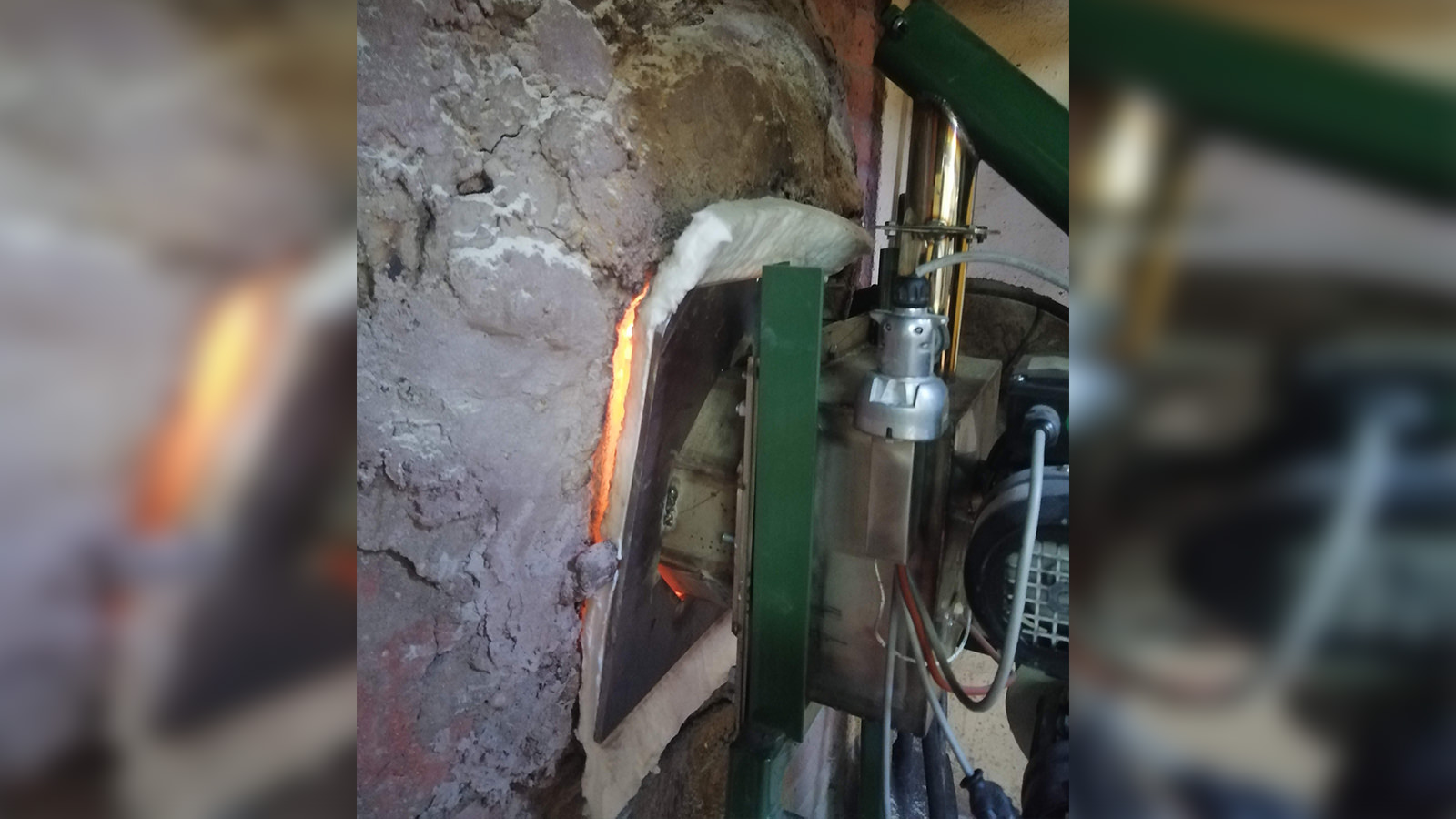 Horno panadero tipo chileno trabajando a leña. Se instala quemador a pellets de 200 Kw de potencia máx. Tolva incorporada de 50 kg.